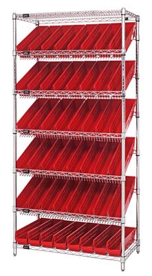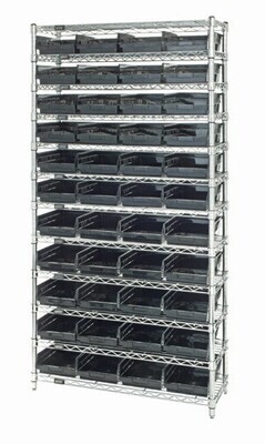 QSB1## series shelf bins also come in Clear on wire shelving as featured here.Due to system limitations you must still choose CLEAR option.